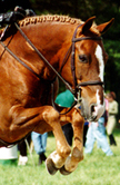 12 year old, 12.1 & 7/8 (w/permanent card & lifetime recording) Chestnut gelding with a blaze and stockings. He can model, win the hack, jumps great, has a huge stride and does automatic lead changes. |